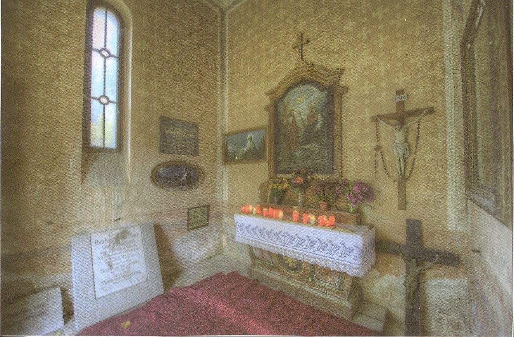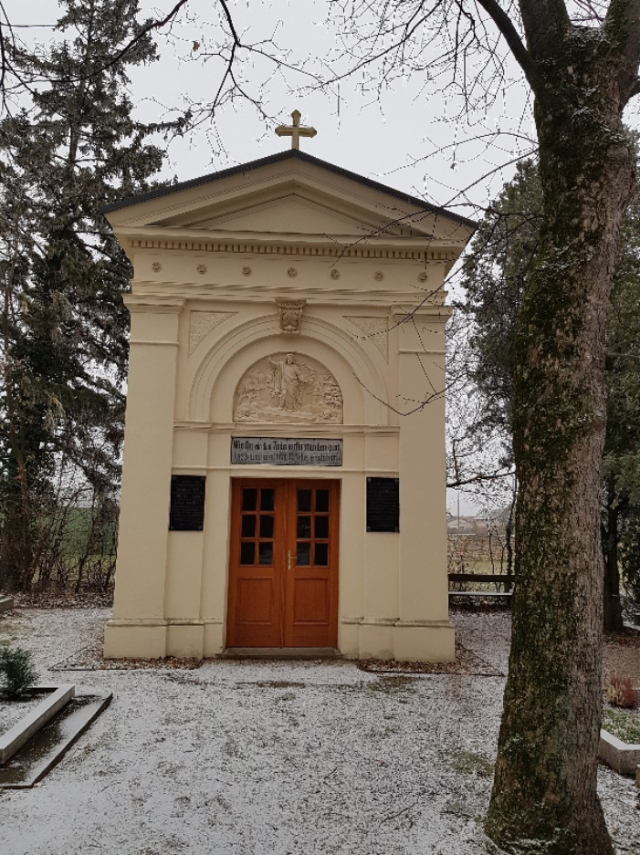 Links vor der Kapelle befindet sich das Grab von Konsistorialrat Albin Formanns (Pfarrer von 1935 – 1949) und von Geistlichem Rat Anton Irschik (1952 – 1987).