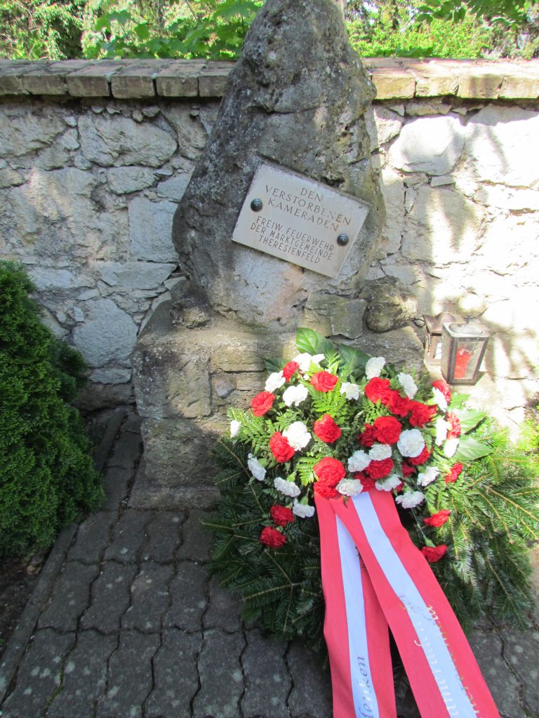 Daneben befindet sich das Denkmal für die verstorbenen Kameraden der Freiwilligen Feuerwehr Theresienfeld.